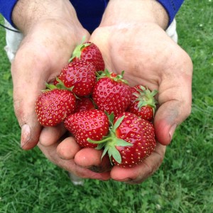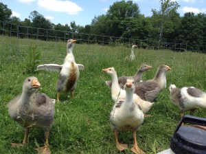 It was a good year for June bearing strawberries.A successful bark graft of American persimmon.“Piggie” enjoys drinking fresh Jersey cow’s milk and eating Jerusalem artichokes.These are the offspring of our Pilgrim gander and our Tufted-Roman & Buff geese.We experimented raising a batch Cornish cross chickens.Alpine strawberries are still the favourite variety.Red currants for fresh eating, smoothies and in morning oatmeal.“Piggie” is moved to a new patch of ground.House sparrow chicks are not welcome inhabitants of the blue bird boxes.The paw paw flowers set fruit and are ripening in the sunny spots along the woods trails.Incubator hatched goslings were popular items in early summer.An artistic display of rhubarb for jamming and pie.A mourning dove fledgling came for a visit.Late fruiting honey-berries were popular on the farm especially ‘blue velvet’ and ‘blue moon’ varieties.The goslings take a stroll around the orchard under the watchful gaze of our Great Pyrenees.